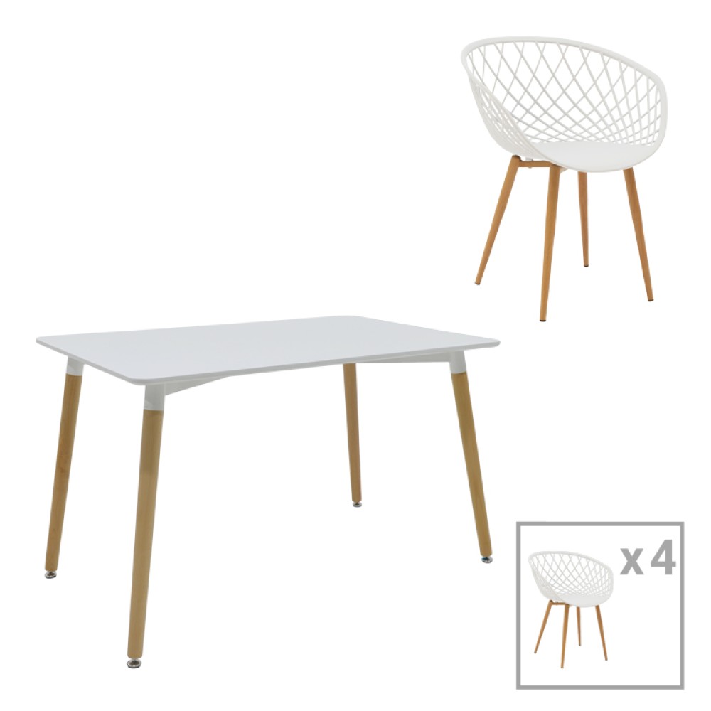 Τραπεζαρία Ezra-Natali pakoworld σετ 5τεμ pp-mdf σε λευκή-φυσική απόχρωση 120x80x76εκ