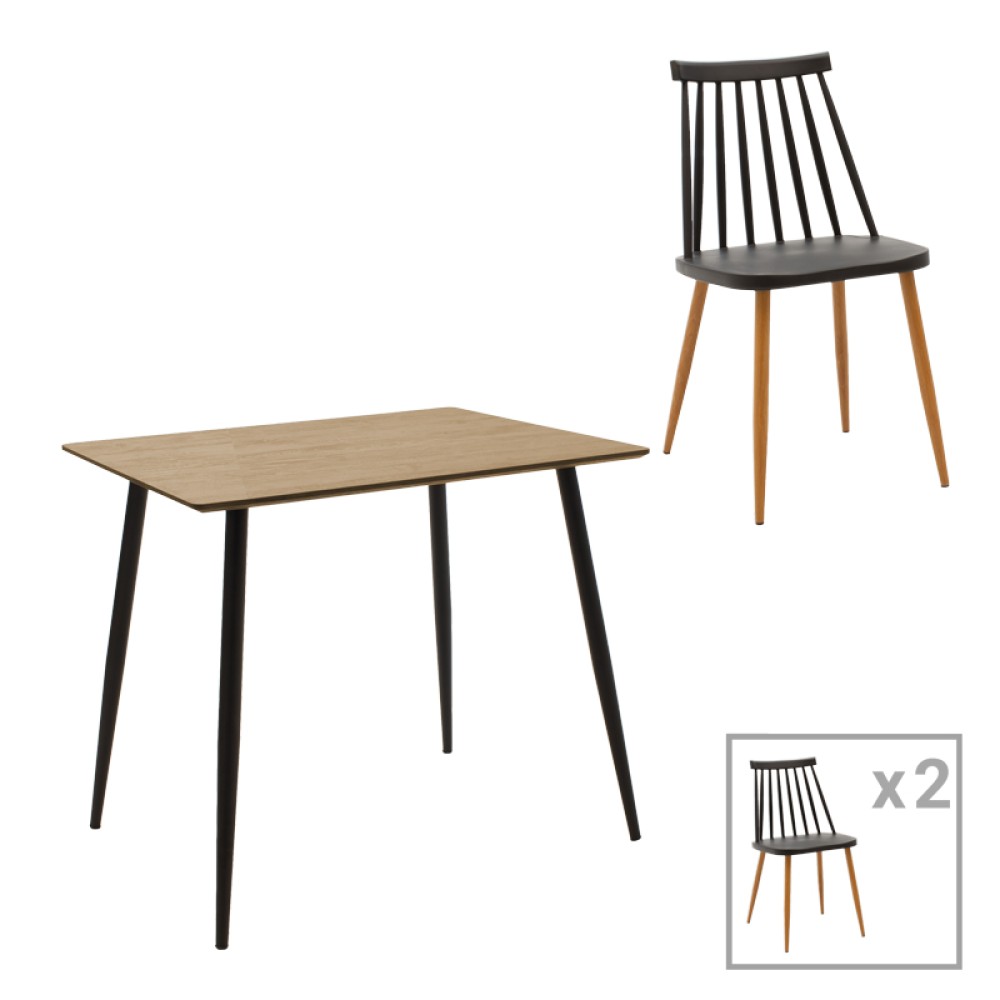 Τραπεζαρία Aurora-Cuba pakoworld σετ 3τεμ pp-mdf σε μαύρη-sonoma απόχρωση 70x70x75εκ