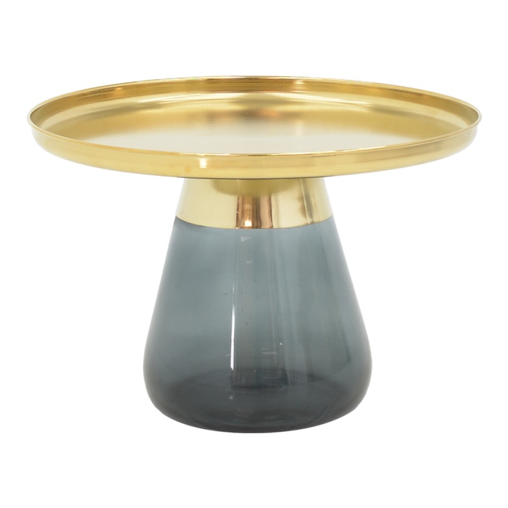 Βοηθητικό τραπέζι Kunlo Inart χρυσό χρώμιο-μαύρο γυαλί Φ60x42εκ