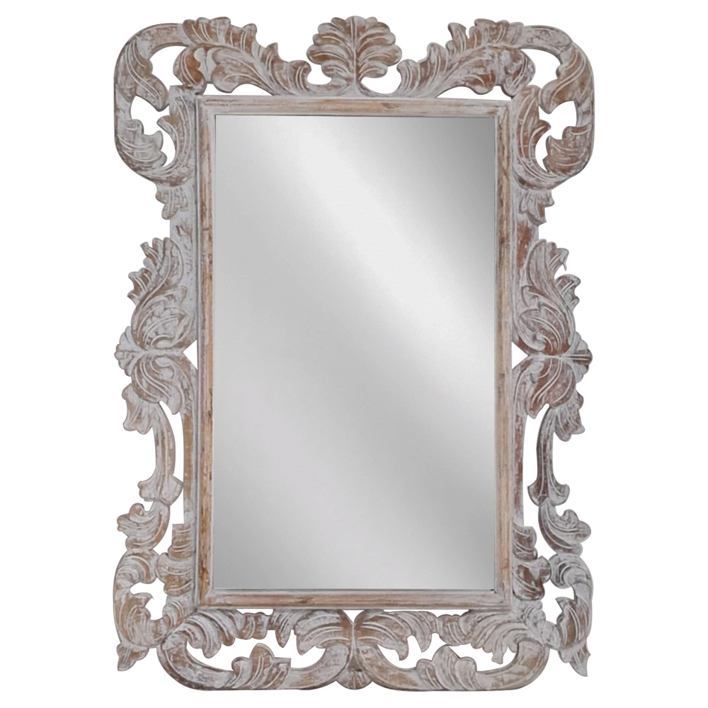 Artekko Mirroki Ξύλινος Λευκός Πατίνα Σκαλιστός Καθρέπτης Τοίχου (100x70)cm - 100cm x 70cm x 5cm