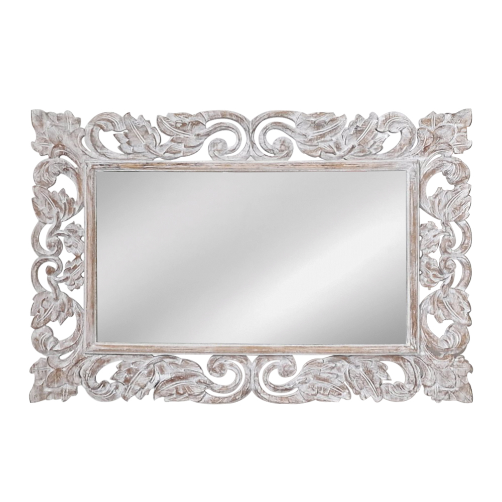 Artekko Mirroki Ξύλινος Λευκός Πατίνα Σκαλιστός Καθρέπτης Τοίχου (100x70)cm