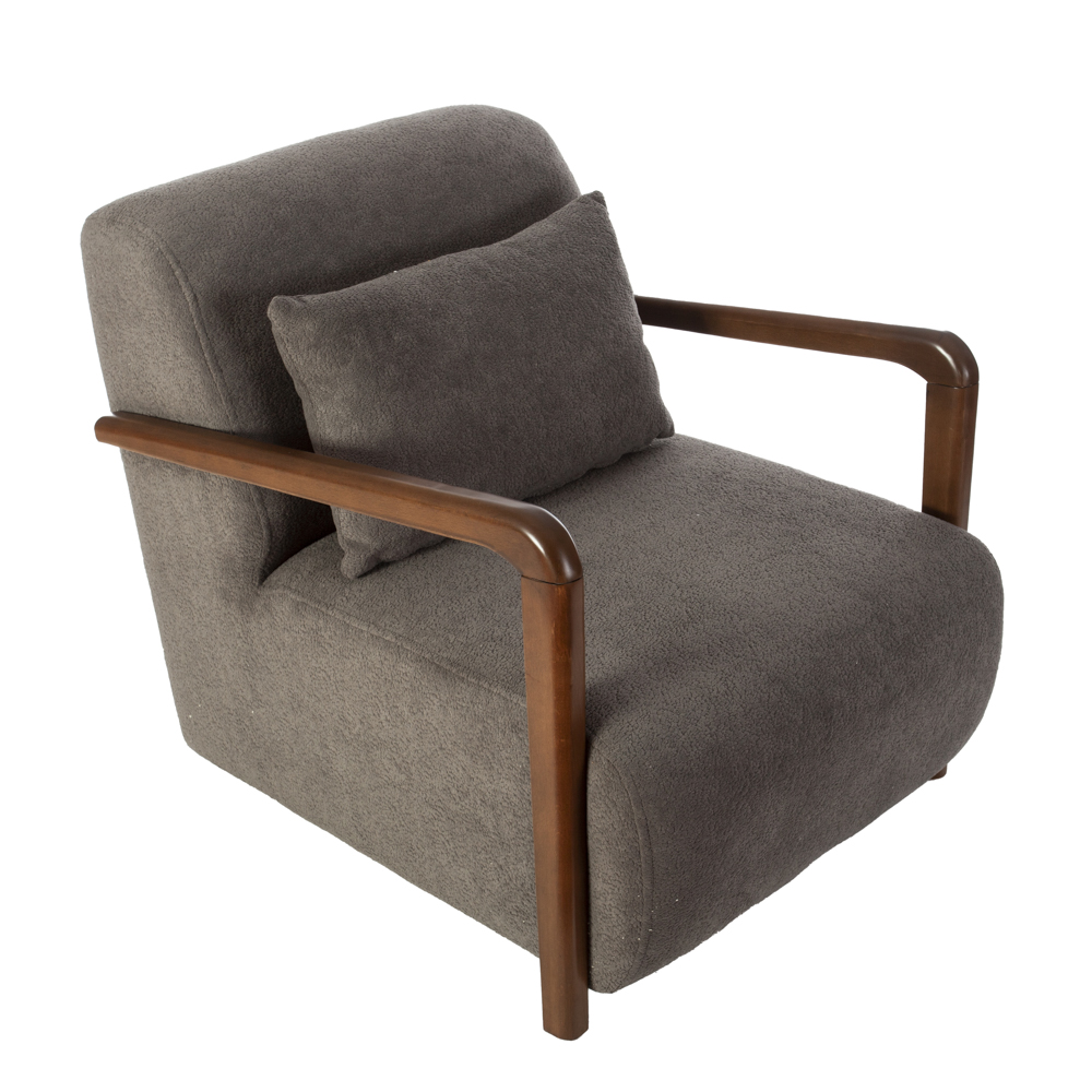Γκρι Υφασμάτινη Πολυθρόνα με Ξύλινα Μπράτσα