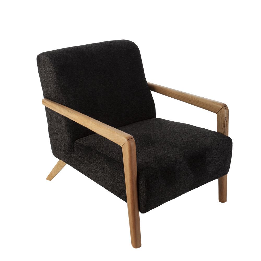 Πολυθρόνα Fern pakoworld PU μαύρο-ξύλο καρυδί απόχρωση 52x59x80εκ