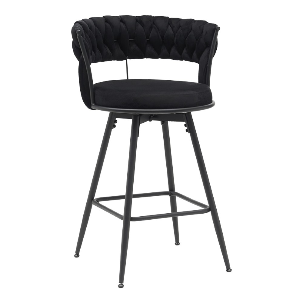 Σκαμπό μπαρ Alkia pakoworld περιστρεφόμενο σε μαύρο βελούδο με μαύρα πόδια μέταλλο 58x55x90εκ
