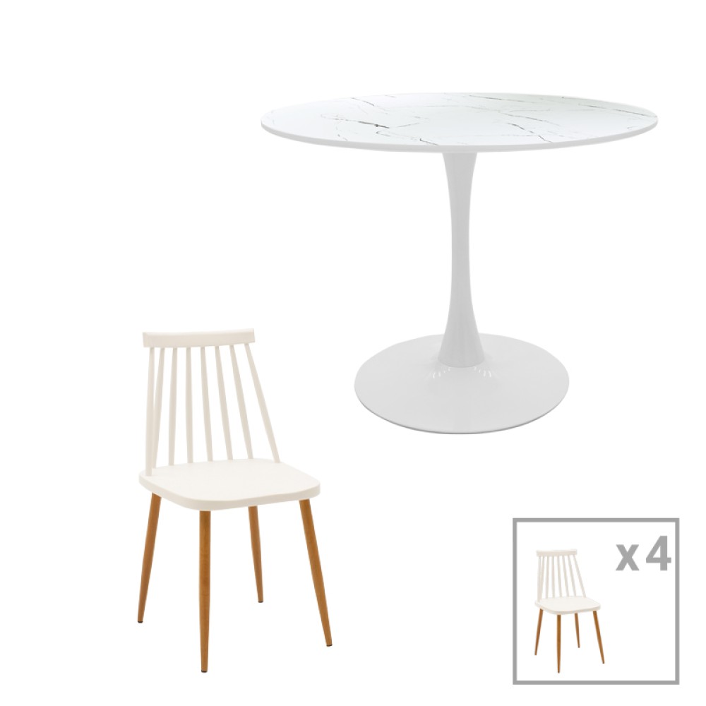 Τραπεζαρία Aurora-Balou pakoworld σετ 5τεμ pp-mdf σε λευκό μαρμάρου απόχρωση Φ120x73εκ