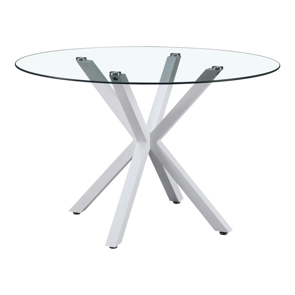 Τραπέζι Tavula pakoworld Γυαλί- Μεταλλικά πόδια σε λευκή απόχρωση Φ120x75εκ