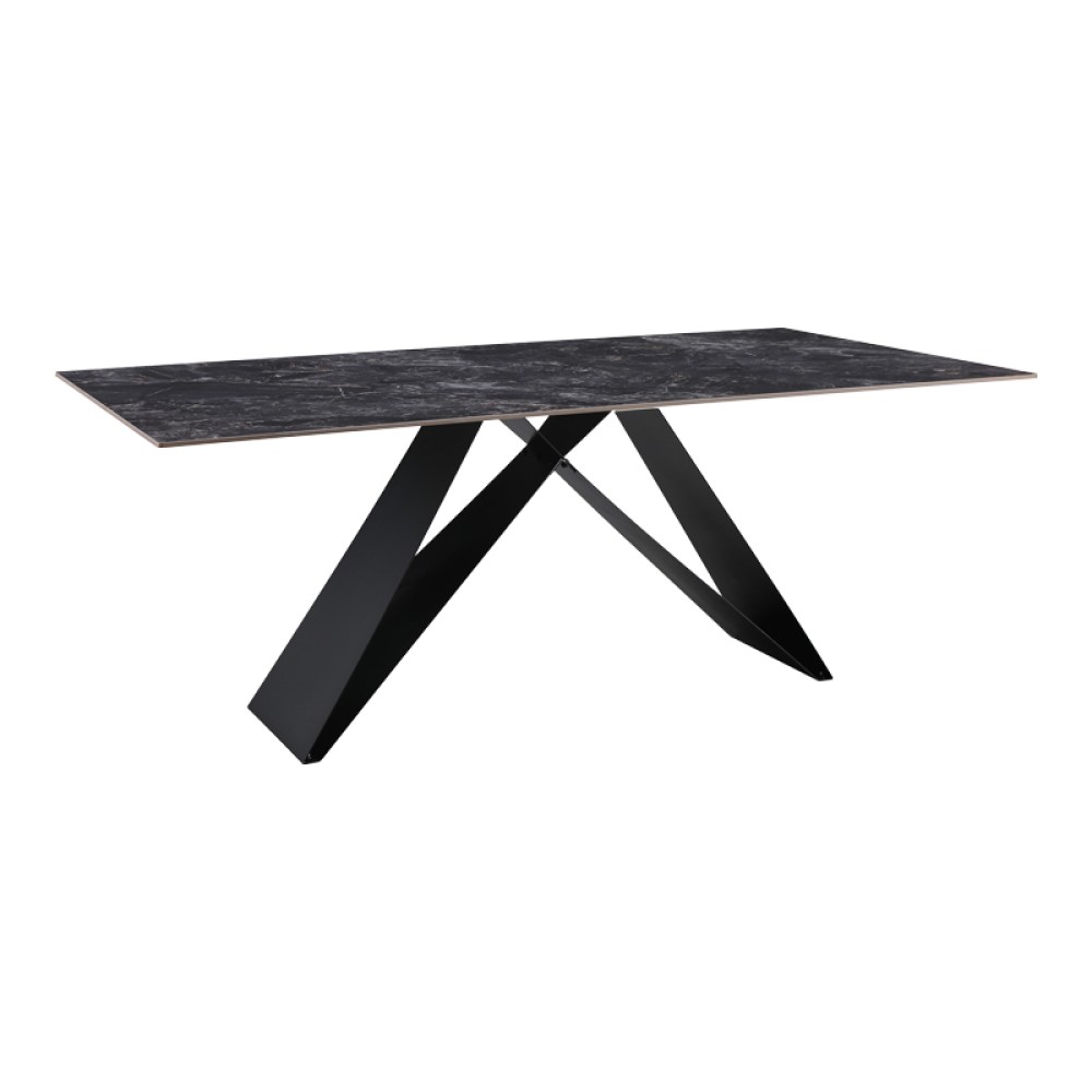 Τραπέζι Meja pakoworld Sintered stone μαύρο με μεταλλικά πόδια σε μαύρη απόχρωση 200x100x76εκ