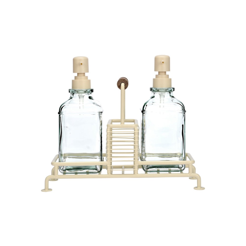 ESTIA ΔΟΧΕΙΑ ΥΓΡΟΥ ΠΙΑΤΩΝ ALLURE 2x300ml ΜΕ ΜΕΤΑΛΛΙΚΗ ΒΑΣΗ & ΘΗΚΗ ΓΙΑ ΣΦΟΥΓΓΑΡΙ IVORY