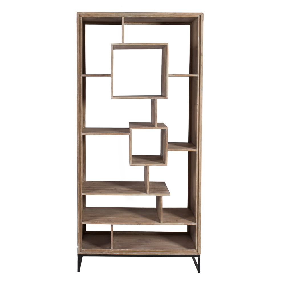 Artekko Attari Ξύλινη Μασίφ Βιβλιοθήκη Ραφιέρα σε Λευκή Πατίνα (100x41x210)cm - 100cm x 41cm x 210cm