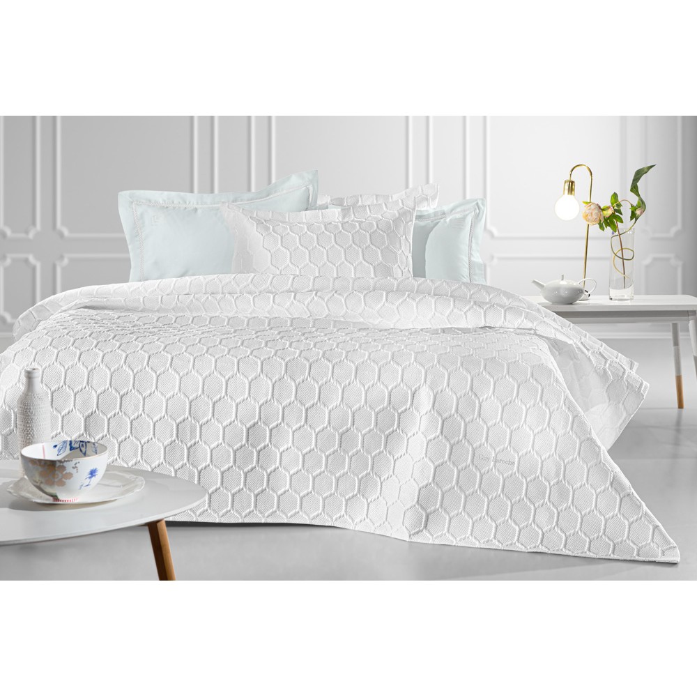 Σετ κουβερλί jacquard 3 τεμαχίων αποτελούμενο από ένα κουβερλί και δύο διακοσμητικές μαξιλαροθήκες διάστασης 50x70εκ. Το σετ είναι κατασκευασμένο από 100% microsatin με ανάγλυφο σχέδιο, ιδανικό για τους ανοιξιάτικους και θερινούς μήνες, με την υπογραφή της Guy Laroche Paris.