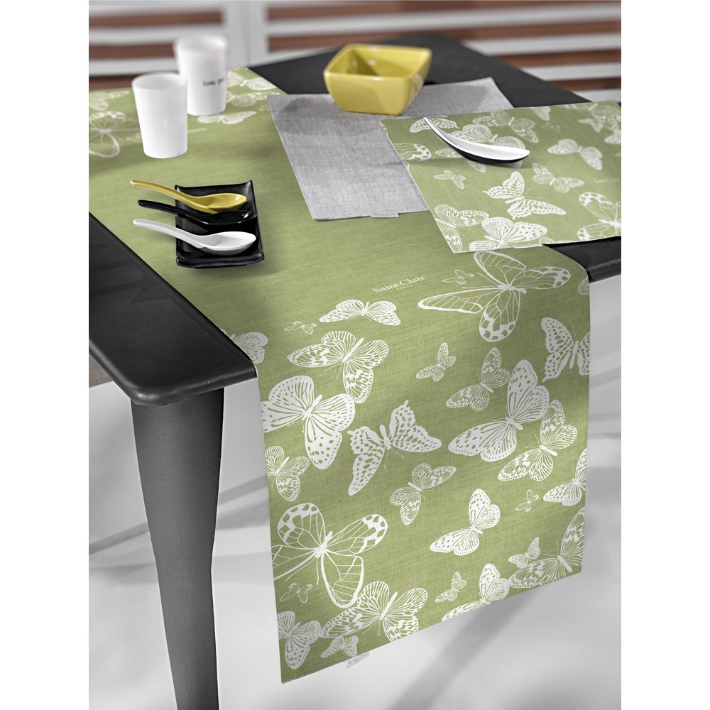 Αλέκιαστη τραβέρσα δύο όψεων της Saint Clair Paris. Σε γκρι απόχρωση από τη μία μεριά και μοντέρνο σχέδιο από την άλλη. Κατασκευασμένη από 100% πολυεστέρα.