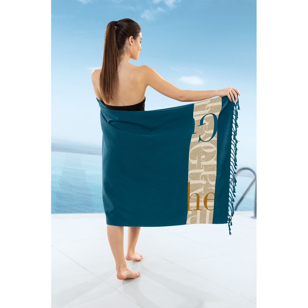 Πετσέτα - παρεό θαλάσσης με φάσα ψηφιακής εκτύπωσης και κρόσσια από την εταιρεία Guy Laroche Paris. Σύνθεση από 100% βαμβάκι βάρους 330gsm. Η επάνω πλευρά είναι ύφασμα ενώ η κάτω πλευρά είναι πετσετέ. Ιδανική καλοκαιρινή επιλογή καθώς είναι απορροφητικό με γρήγορο και εύκολο στέγνωμα. Διάσταση 90x170εκ.