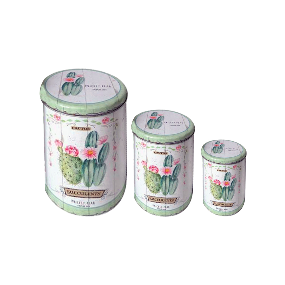 Πολύχρωμα Μεταλλικά Δοχεία Αποθήκευσης με Κάκτους 3pcs