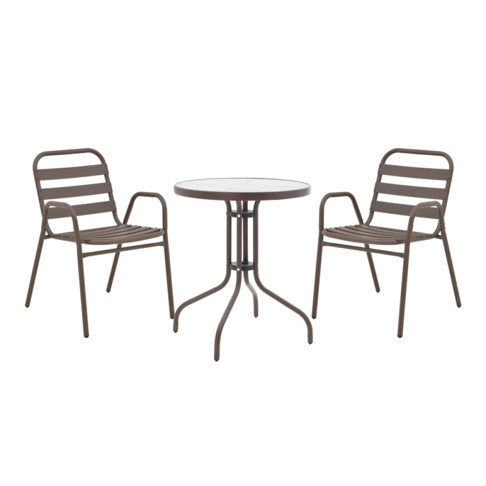 Τραπεζαρία Watson-Sussie pakoworld σετ 3τεμ μέταλλο καφέ-γυαλί Φ60x70εκ