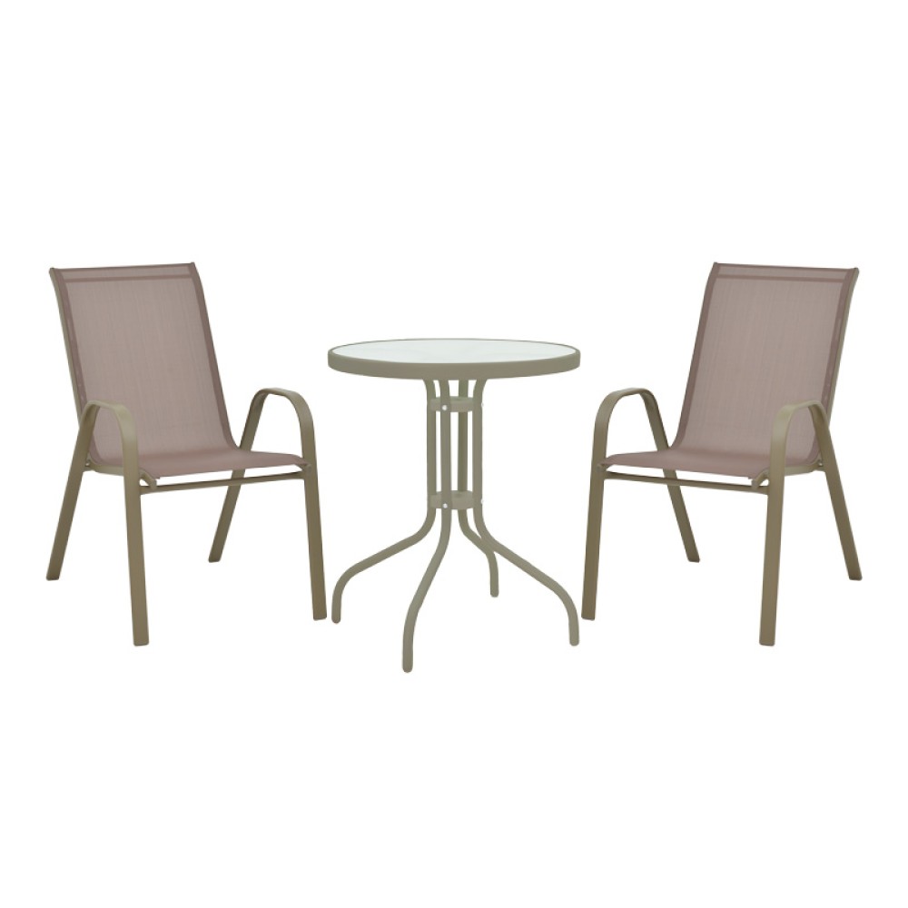 Τραπεζαρία Calan-Watson pakoworld σετ 3τεμ μέταλλο σαμπανιζέ-γυαλί Φ60x70εκ