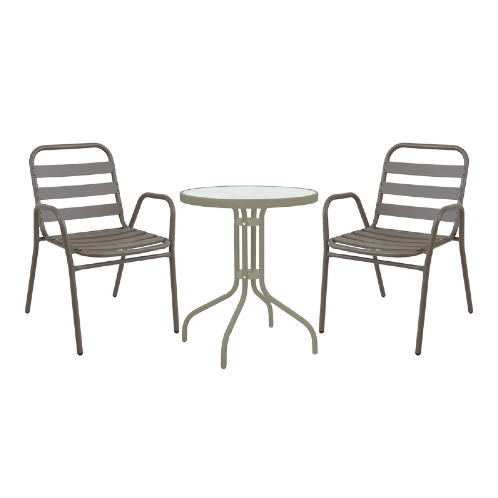 Τραπεζαρία Watson-Sussie pakoworld σετ 3τεμ μέταλλο σαμπανιζέ-γυαλί Φ60x70εκ