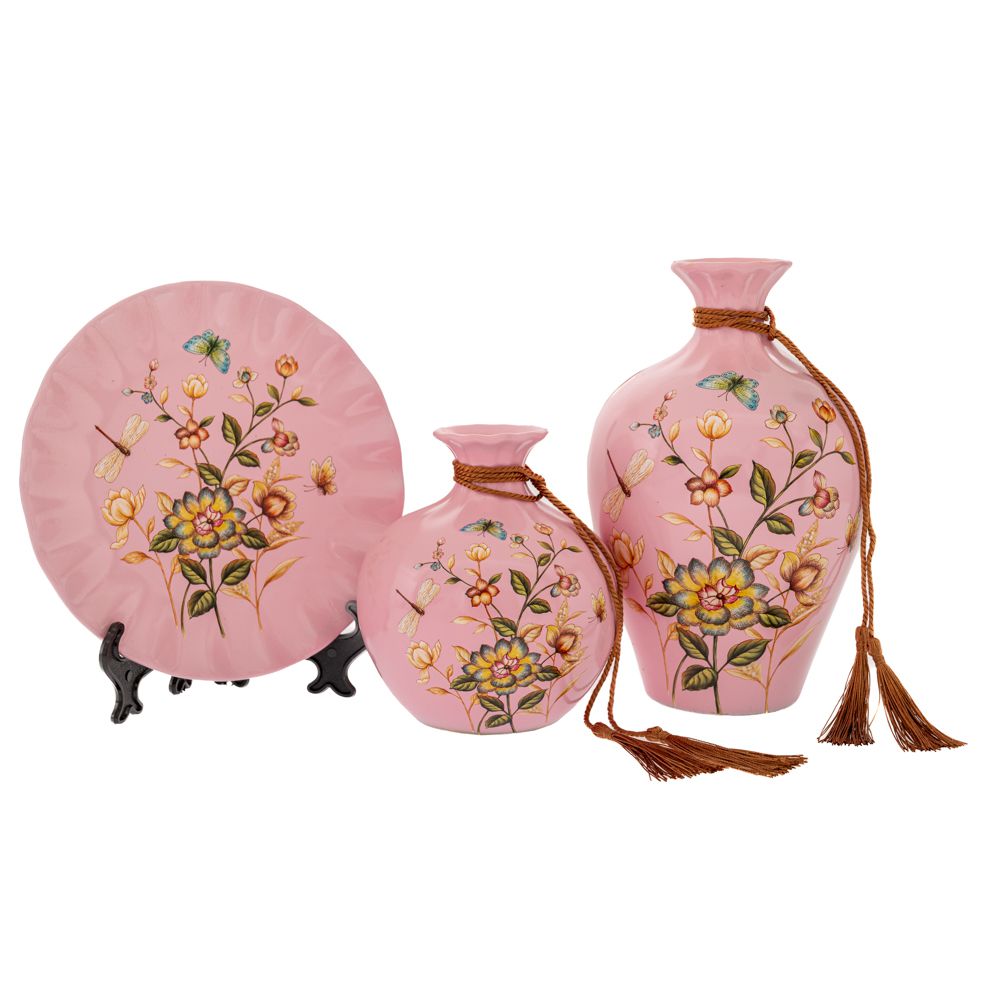 ΣΕΤ 3 ΡΟΖ ΚΕΡΑΜΙΚΑ ΕΠΙΤΡΑΠΕΖΙΑ ΔΙΑΚΟΣΜΗΤΙΚΑ ΜΕ ΛΟΥΛΟΥΔΙΑ 14Χ14Χ22 13Χ13Χ15 20Χ20Χ2ΕΚ