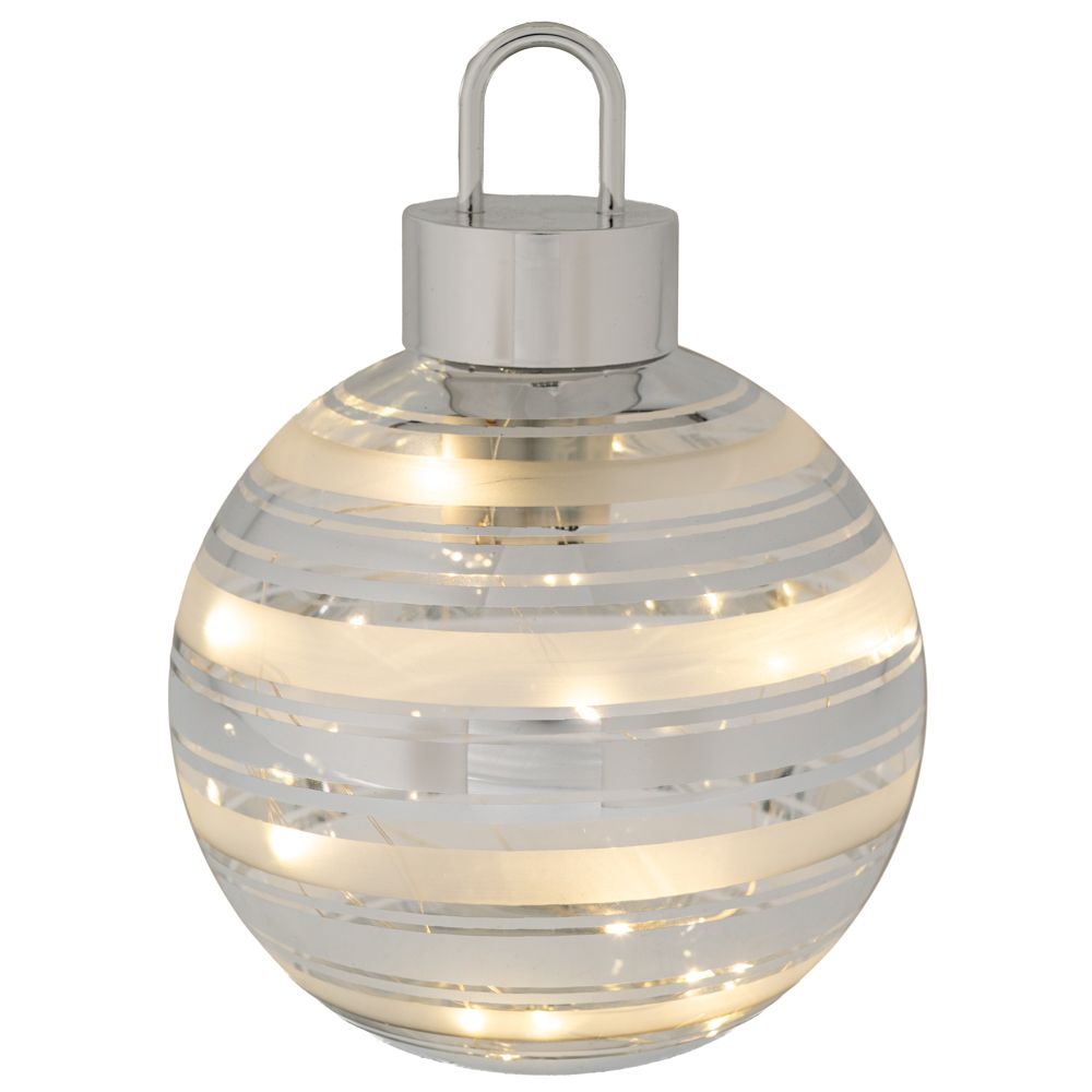 ΛΕΥΚΗ ΓΥΑΛΙΝΗ ΜΠΑΛΑ ΜΕ ΑΣΗΜΙ ΡΙΓΑ ΚΑΙ LED ΦΩΣ Φ15ΕΚ ΜΠΑΤΑΡΙΑΣ