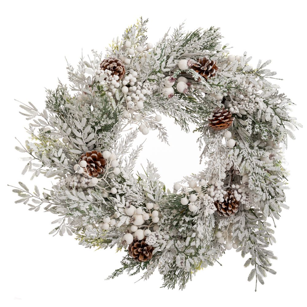 ΧΙΟΝΙΣΜΕΝΟ ΣΤΕΦΑΝΙ ΜΕ ΛΕΥΚΑ BERRIES ΚΑΙ ΚΟΥΚΟΥΝΑΡΙΑ 55ΕΚ