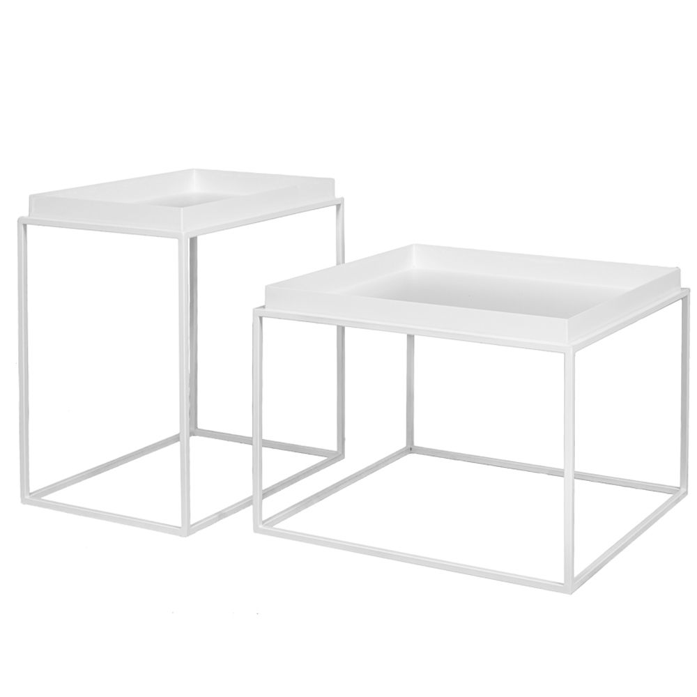 Λευκό μεταλλικό σετ τραπεζιών των δύο τεμαχίων με διαστάσεις 60x60x40 και 56x38x45εκ.