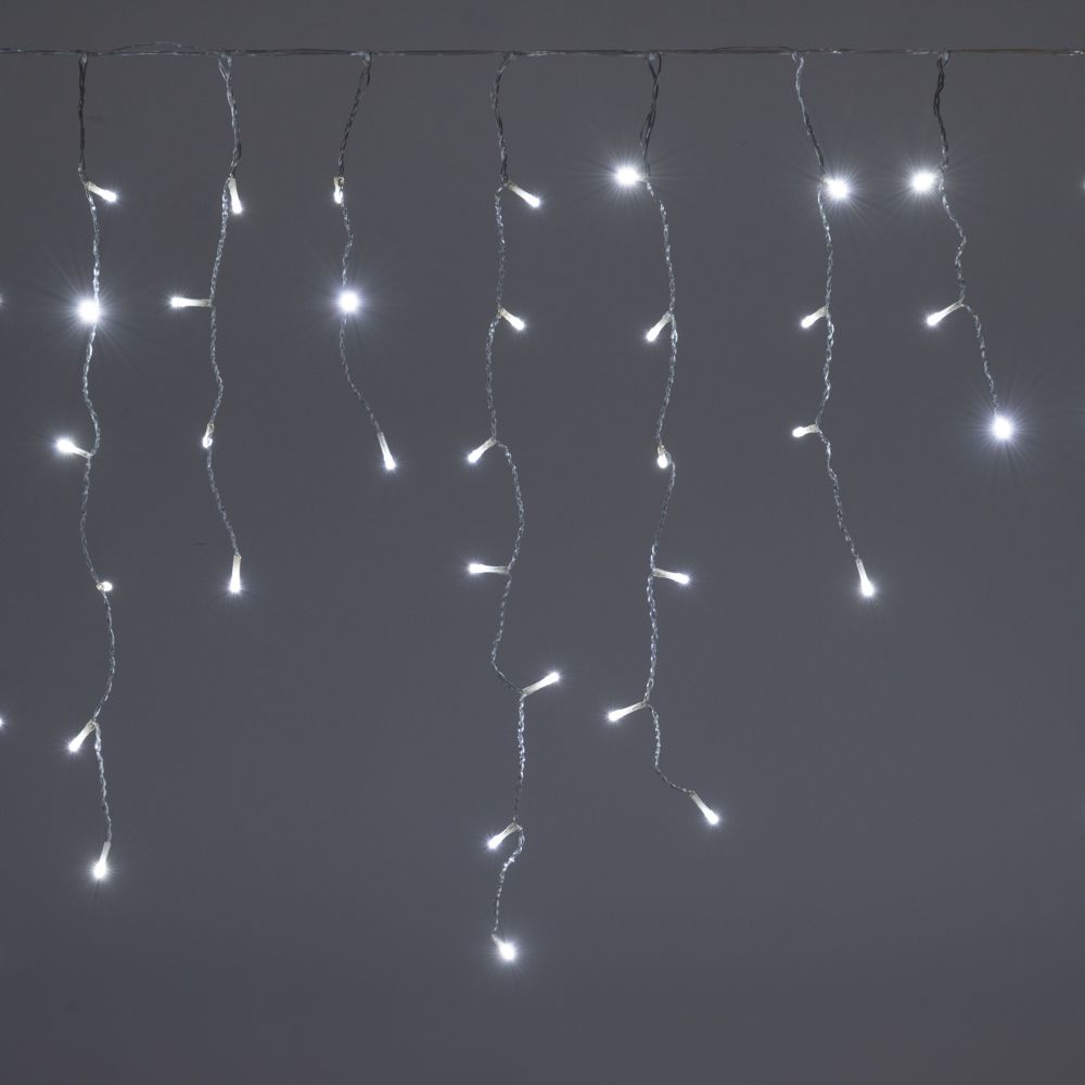Εσωτερικού και εξωτερικού χώρου. Σταλλακτίτης ασύμετρος με 150led επεκτεινόμενος έως 3 φορές. Μήκος 3 μέτρα και μέγιστό ύψος 60εκ. Σταθερό λευκό του πάγου φως και διαφανό καλώδιο. Συσκευασία σε πλαστικό δοχείο με καπάκι.