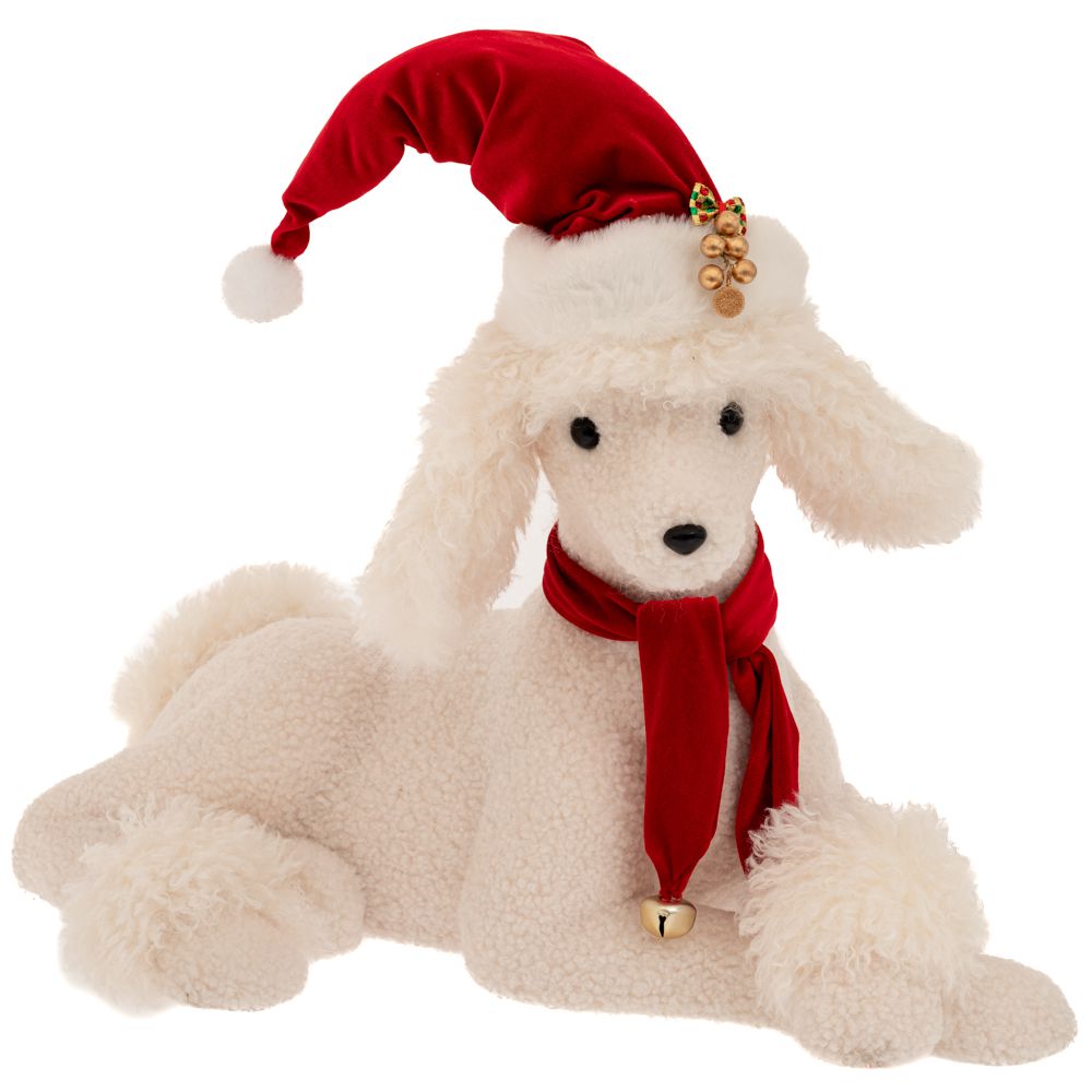 ΛΕΥΚΟΣ ΥΦΑΣΜΑΤΙΝΟΣ ΚΑΘΙΣΤΟΣ ΣΚΥΛΟΣ ΜΕ ΚΟΚΚΙΝΟ ΣΚΟΥΦΟ ΚΑΙ ΚΑΣΚΟΛ 54Χ31Χ37ΕΚ