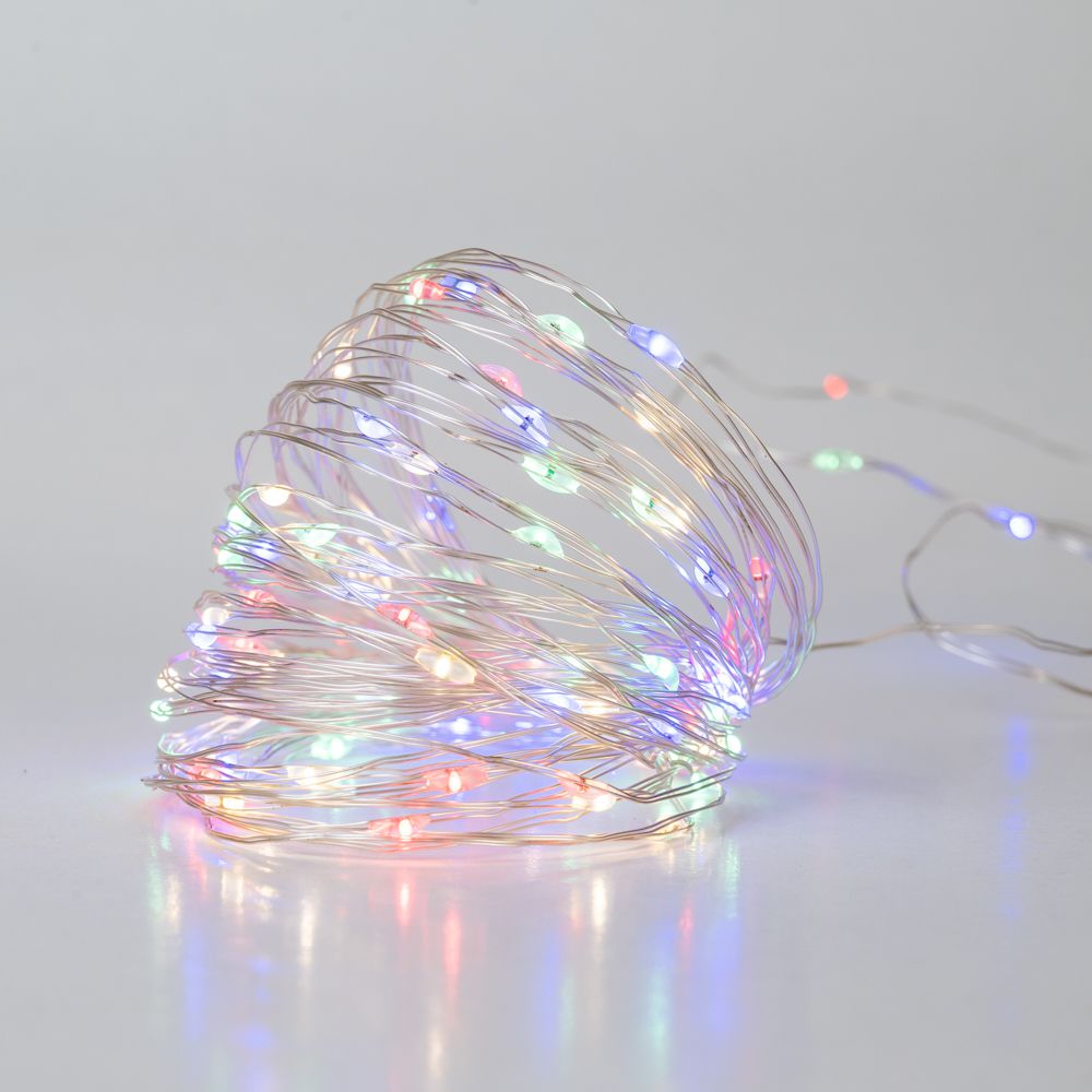 Εσωτερικού και εξωτερικού χώρου σύρμα microled. 100led, ανα 5εκ, 5 μέτρα συνολικό μήκος, ασημί σύρμα και πολύχρωμα λαμπάκια. Αναβοσβήνει με controller 8 προγραμμάτων. Δεν επεκτείνεται.