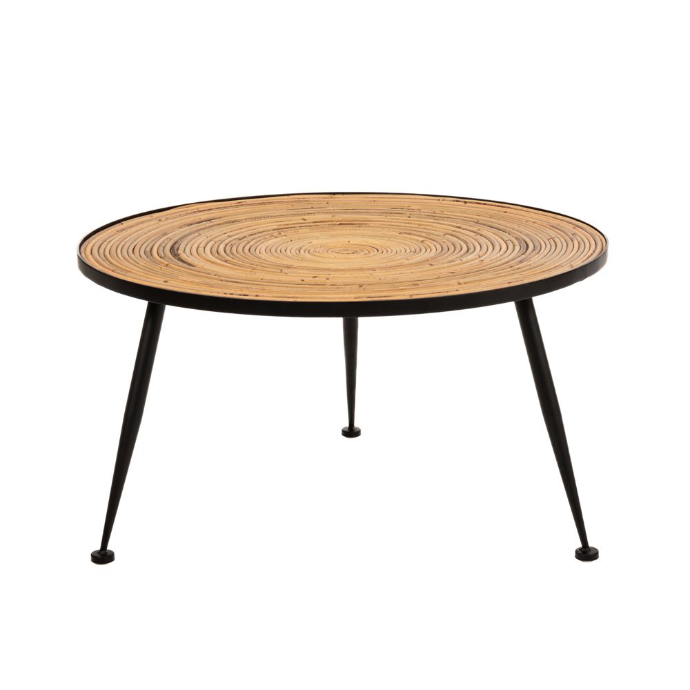 Στρόγγυλο τραπέζι με RATTAN επιφάνεια και μαύρα μεταλλικά πόδια. Η διάμετρός του είναι 73εκ και το ύψος του 40εκ.