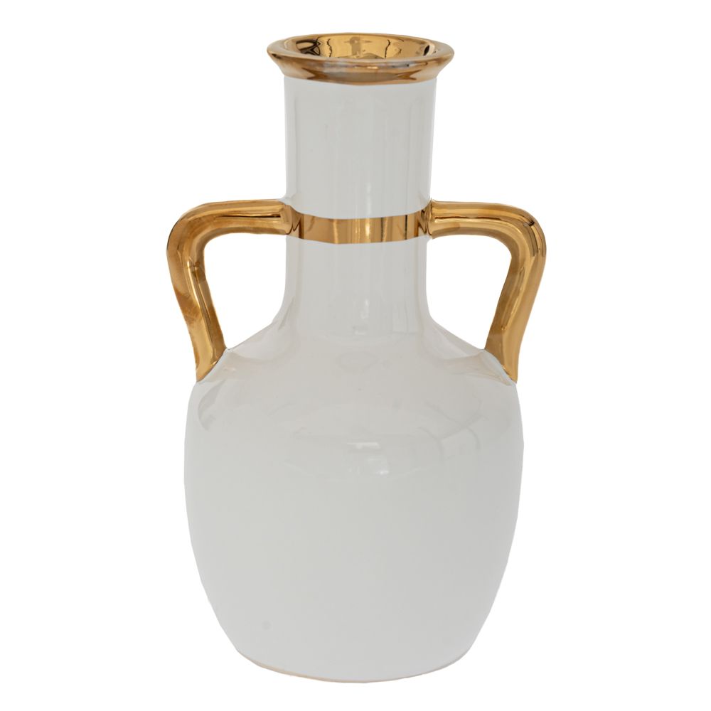 Βάζο κεραμικό με χρυσά χερούλια 20εκ Χαρακτηριστικά: Διάσταση:20εκ Υλικό: Κεραμικό Χρώμα: Λευκό-χρυσό