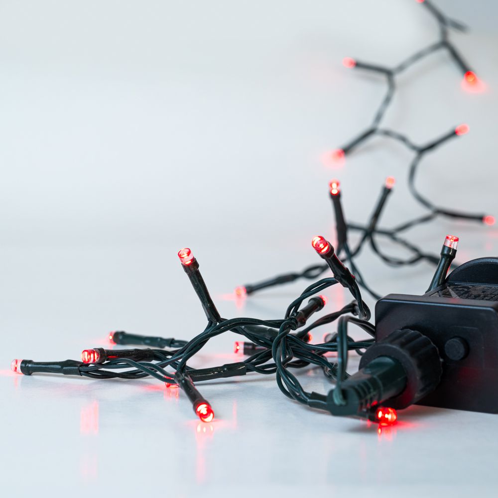 Εσωτερικού και εξωτερικού χώρου. 100led σε σειρά, πράσινο καλώδιο και κόκκινο φως. Μήκος 5μέτρα +1.5 μέτρο για την μπρίζα. Λειτουργεί με 8 προγράμματα με memory control πάνω στην μπρίζα. Συσκευασία σε πλαστικό δοχείο με καπάκι.