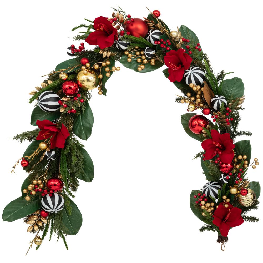 ΚΟΚΚΙΝΗ ΓΙΡΛΑΝΤΑ ΜΕ ΤΕΧΝΗΤΑ ΑΝΘΗ ΚΑΙ ΚΟΚΚΙΝΕΣ ΜΠΑΛΕΣ 23Χ15Χ183ΕΚ