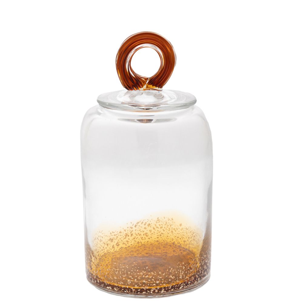 Βάζο με καπάκι διάφανο-καφέ γυάλινο φ12 χ12 22.5εκ.υψος.