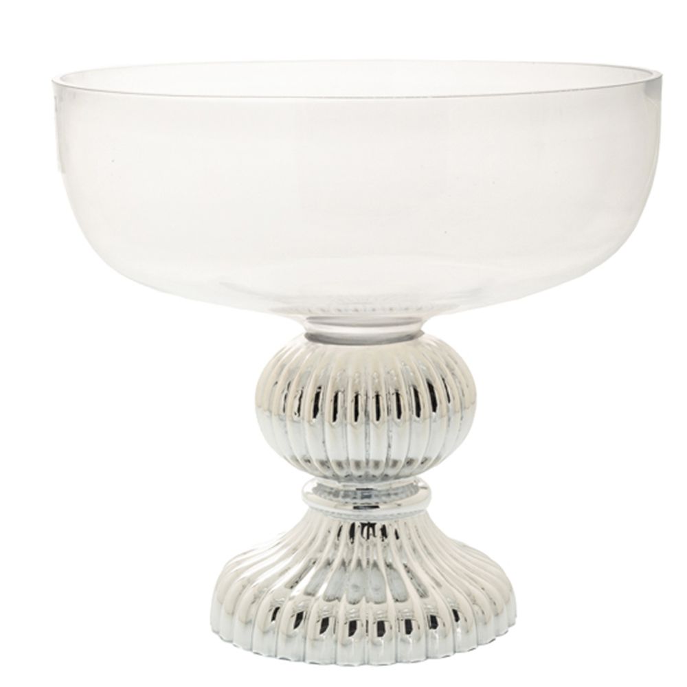 Γυάλινο μπώλ διάφανο με ασημί πόδι 32χ17χ29.5εκ.υψος.