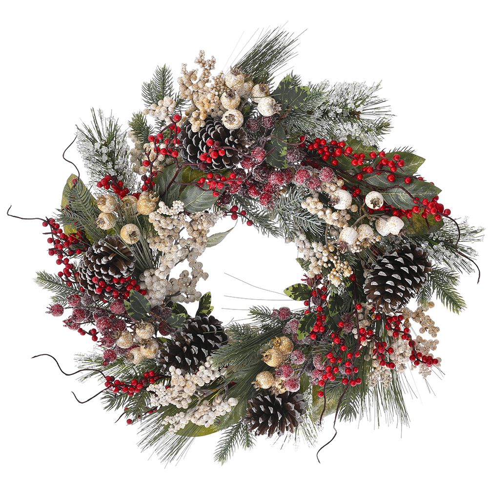 ΠΡΑΣΙΝΟ ΣΤΕΦΑΝΙ ΜΕ ΚΟΚΚΙΝΑ ΚΑΙ ΧΡΥΣΑ BERRIES 55ΕΚ