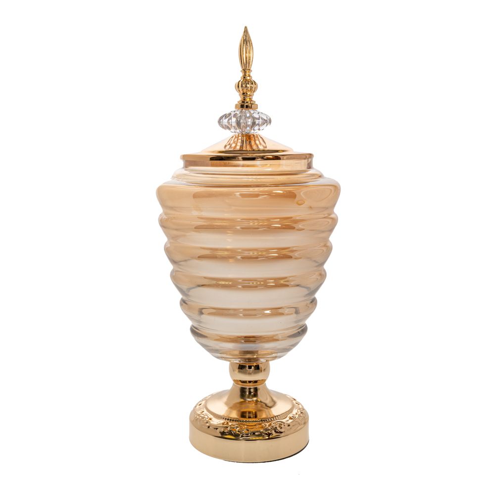 ΓΥΑΛΙΝΟ ΔΟΧΕΙΟ ΜΕΛΙ ΜΕ ΠΟΔΙ ΚΑΙ ΧΡΥΣΟ ΜΕΤΑΛΛΙΚΟ ΚΑΠΑΚΙ Φ17Χ38ΕΚ
