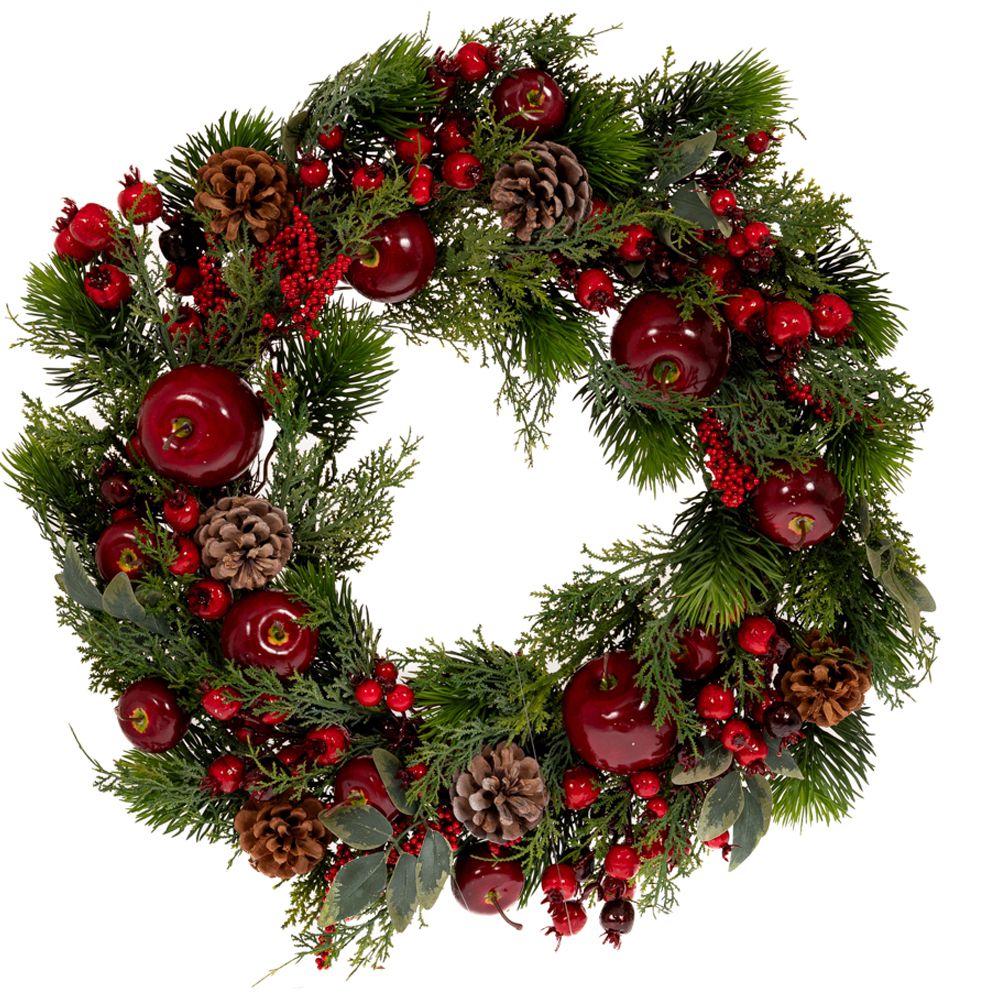 ΠΡΑΣΙΝΟ ΣΤΕΦΑΝΙ ΜΕ ΚΟΥΚΟΥΝΑΡΙΑ, ΚΟΚΚΙΝΑ BERRIES ΚΑΙ ΡΟΔΙΑ 55ΕΚ
