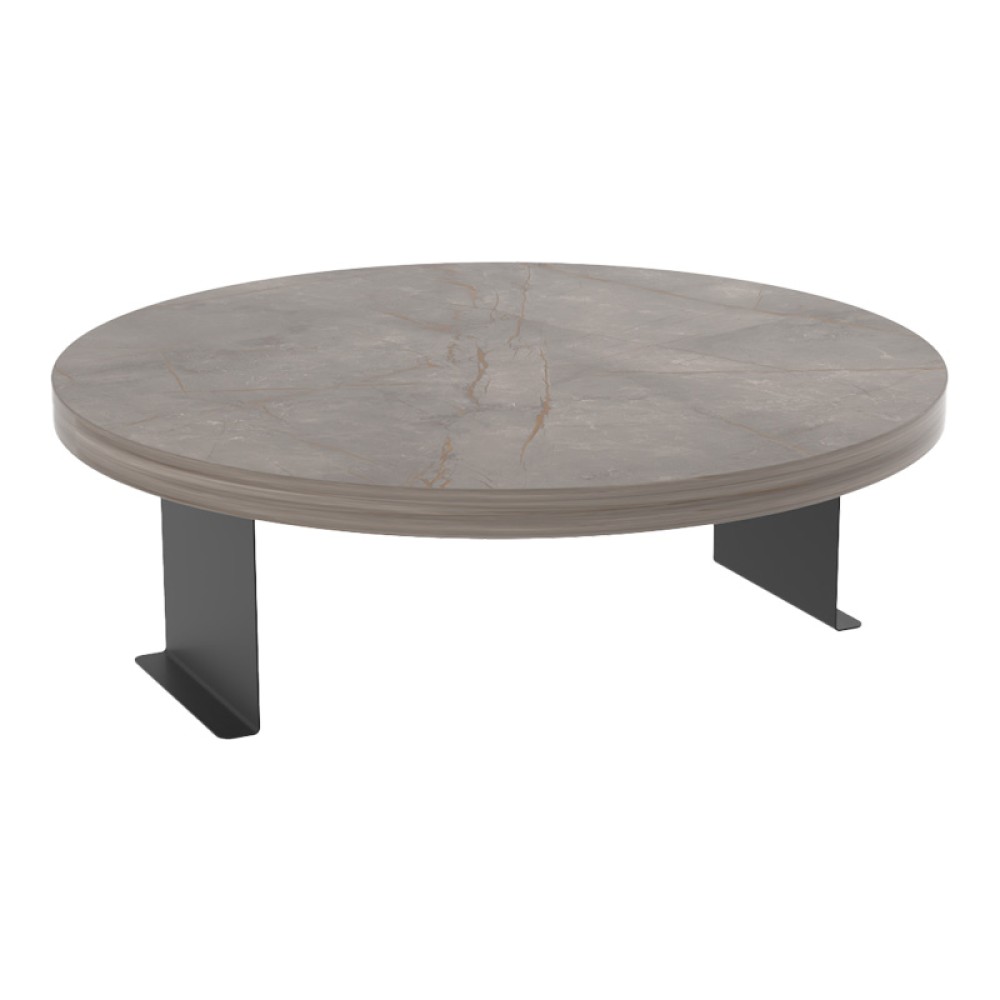 Βοηθητικό τραπεζάκι Linea pakoworld σε ανθρακί με μαύρα μεταλλικά πόδια Φ35,5x5εκ