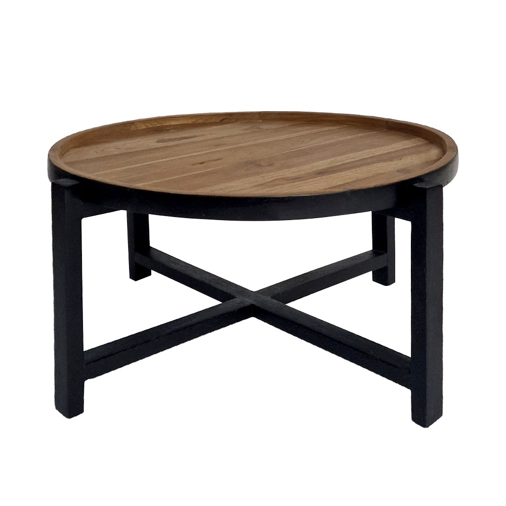 Artekko Munggur Ξύλινο Τραπέζι Σαλονιού σε Φυσική Απόχρωση με Μαύρο Σκελετό (Φ74x38)cm - 74cm x 74cm x 38cm