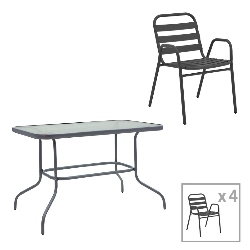 Τραπεζαρία Valor-Sussie pakoworld σετ 5τεμ μέταλλο ανθρακί-γυαλί 110x60x70εκ