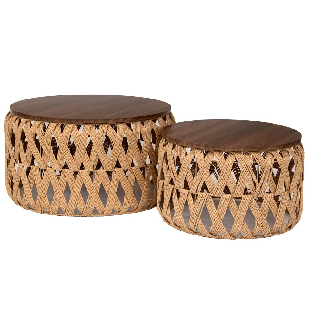 Σκαμπώ-Τραπεζάκια σετ των 2τμχ κατασκευασμένα από ανθεκτικό αδιάβροχο σχοινί.