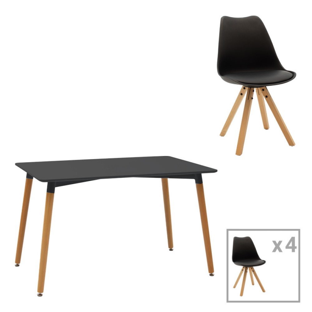 Τραπεζαρία Natali-Caron pakoworld σετ 5τεμ mdf σε μαύρη-φυσική απόχρωση 120x80x76εκ