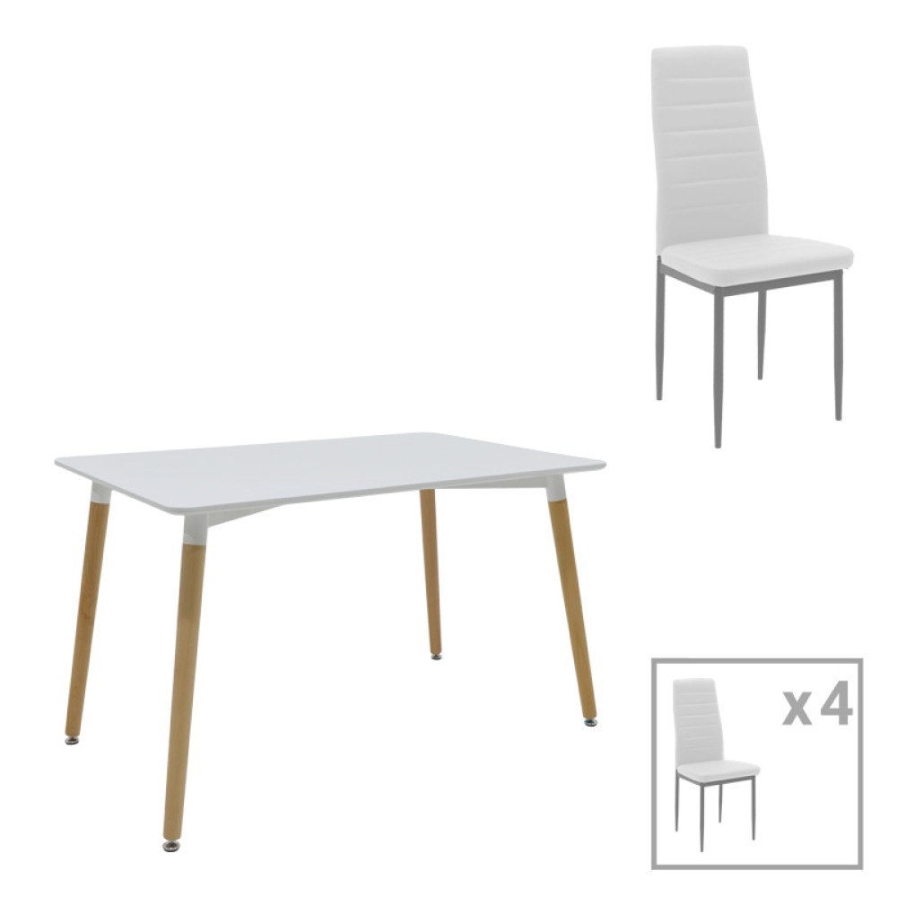Τραπεζαρία Reforia pakoworld σετ 5τμχ mdf σε φυσική απόχρωση με λευκά μεταλλικά πόδια 110x60x74εκ