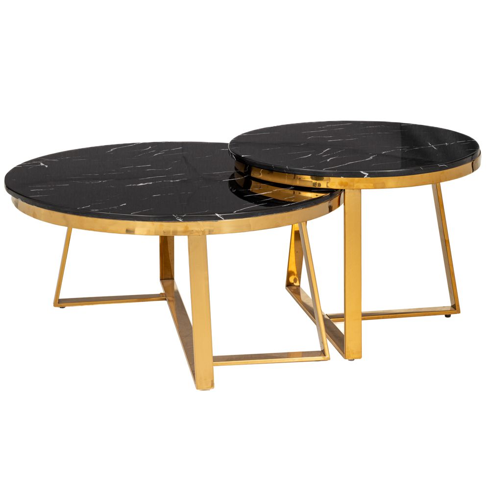 ΣΕΤ 2 ΧΡΥΣΟ ΜΕΤΑΛΛΙΚΟ ΤΡΑΠΕΖΙ ΜΕ ΜΑΥΡΗ ΕΠΙΦΑΝΕΙΑ ΜΕ ΕΦΕ ΜΑΡΜΑΡΟΥ Φ80Χ43ΕΚ Φ60Χ37ΕΚ