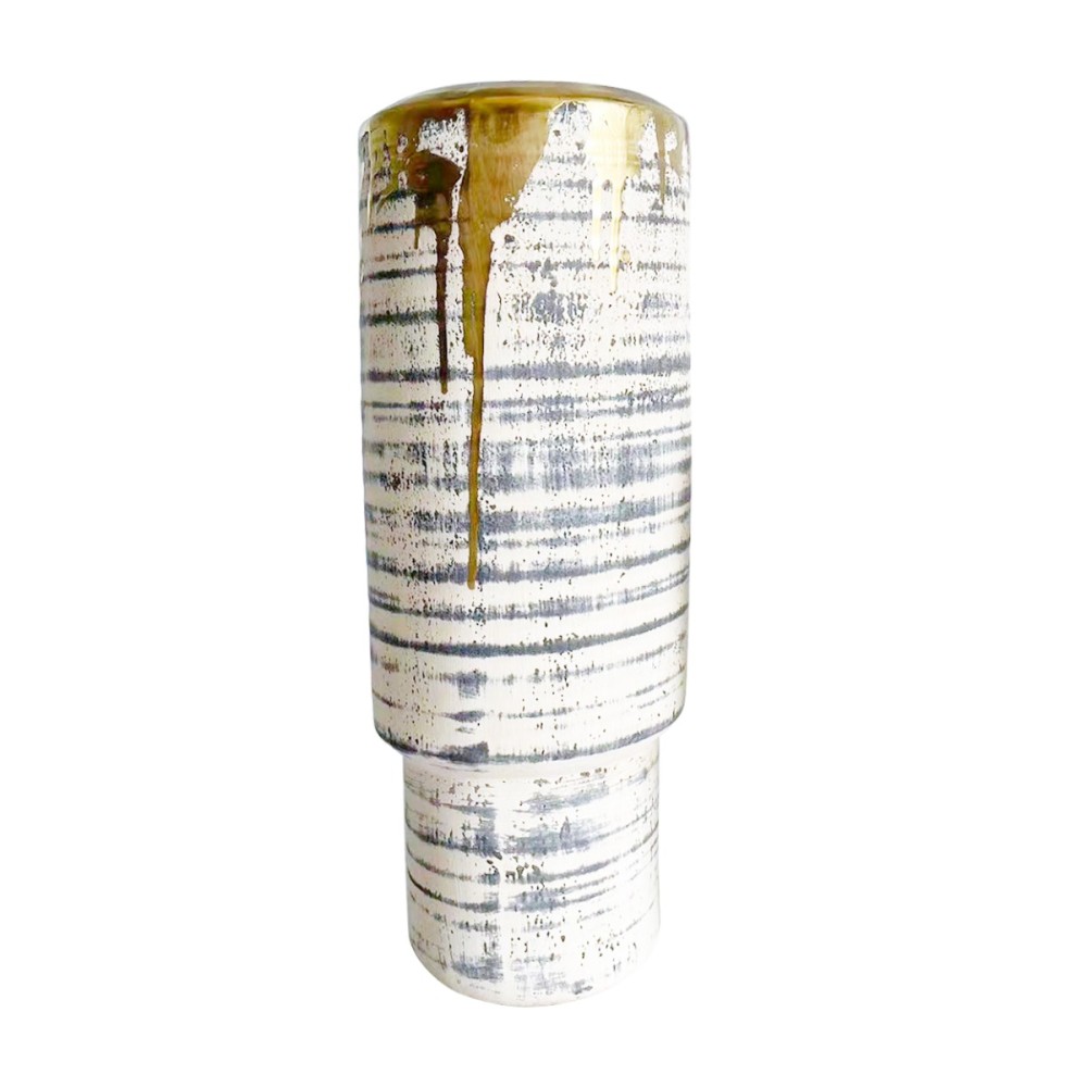 Artekko Kayle Μπεζ Διακοσμητικό Κεραμικό Βάζο με Χρυσό (15x15x40)cm - 15cm x 15cm x 40cm
