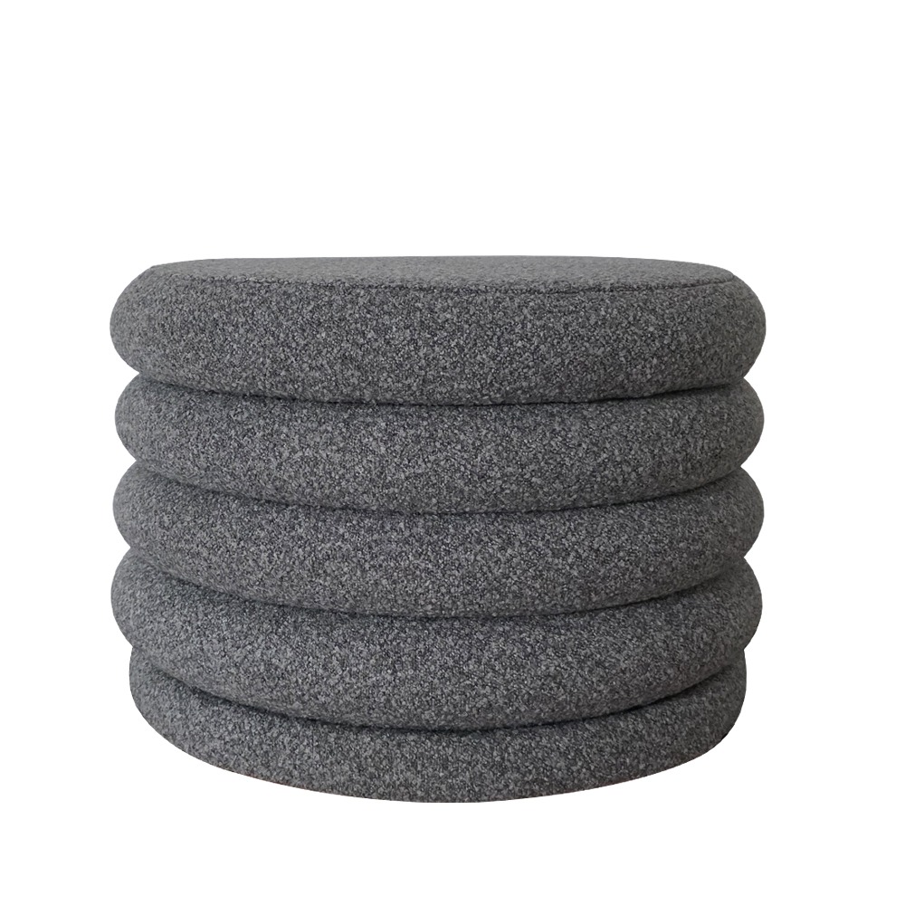 Γκρι Υφασμάτινο Μπουκλέ Σκαμπό με Αποθηκευτικό Χώρο