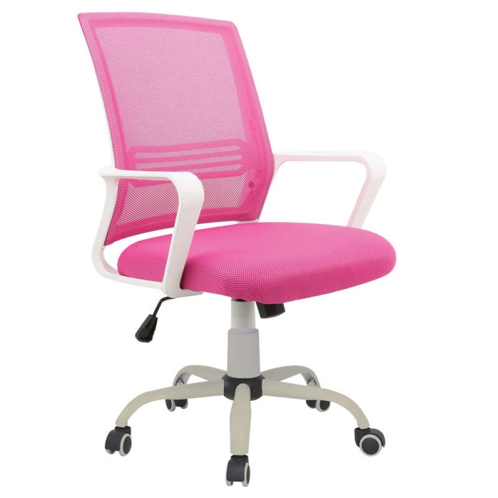 A1600-W πολυθρόνα γραφείου με ροζ mesh διάτρητο ύφασμα για να αποτρέπει την εφίδρωση και ιδιαίτερο σχεδιασμό για μοντέρνους χώρους. Η ελαστικότητα του υφάσματος ακολουθεί την κλήση του σώματος ώστε να προσαρμόζεται στις ανάγκες του κάθε χρήστη. Τα μπράτσα είναι σταθερά σε λευκό χρώμα. Το κάθισμα ρυθμίζεται στο επιθυμητό ύψος, ο μηχανισμός ανάκλισης ξεκουράζει σε πολλές ώρες εργασίας και όταν χρειάζεται το κάθισμα κλειδώνει σε όρθια θέση. Το αμορτισέρ έχει λευκό προστατευτικό κάλυμμα. Η βάση είναι μεταλλική για μεγαλύτερη αντοχή σε λευκό χρώμα.
