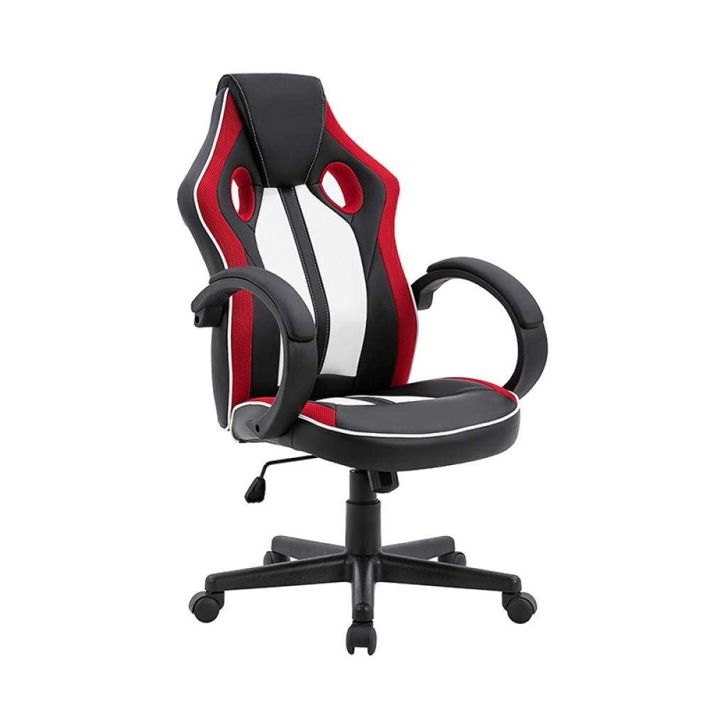 A3950 gaming πολυθρόνα τύπου bucket με ιδιαίτερο design σε χρώμα μαύρο/κόκκινο/λευκό.Η πλάτη και το κάθισμα είναι PU και περιμετρικά διαθέτουν διάτρητο mesh ύφασμα όπου επιτρέπει στη πλάτη να αναπνέει. Σταθερά μπράτσα με δερματίνη για μεγαλύτερη άνεση.