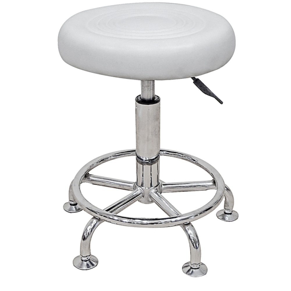 BAR71 σκαμπό εργασίας με αμορτισέρ κατάλληλο για εξοικονόμηση χώρου. Έχει πόδι χρωμίου και υποπόδιο για καλύτερη στήριξη του ποδιού. Το κάθισμα είναι ενδεδυμένο με λευκό χρώμα PU.