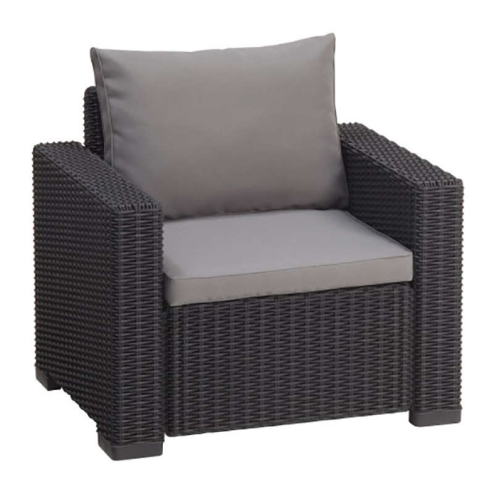 Πολυθρόνα CALIFORNIA του οίκου Allibert K/D σε χρώμα dark grey με μαξιλάρι από resin.Με ιδιάιτερη πλέξη που θα ομορφύνει τον κήπο ή την βεράντα σας.Συνδιάστε την με καναπέ και τραπεζάκι του ίδιου οίκου για ένα ολοκληρωμένο σετ.