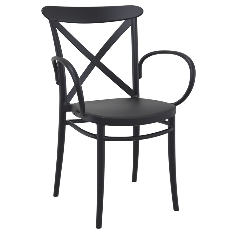 Πολυθρόνα CROSS XL του οίκου Siesta σε μαύρο χρώμα, με design υψηλής αισθητικής. Κατασκευασμένη από πολυπροπυλένιο με 20% fiber glass για απόλυτη αντοχή στον χρόνο. Κατάλληλη για εσωτερική και εξωτερική χρήση, στοιβαζόμενη,ιδανική επιλογή και για επαγγελματικούς χώρους.Πιστοποιημένο προϊόν από τον Ιταλικό οίκο CATAS.